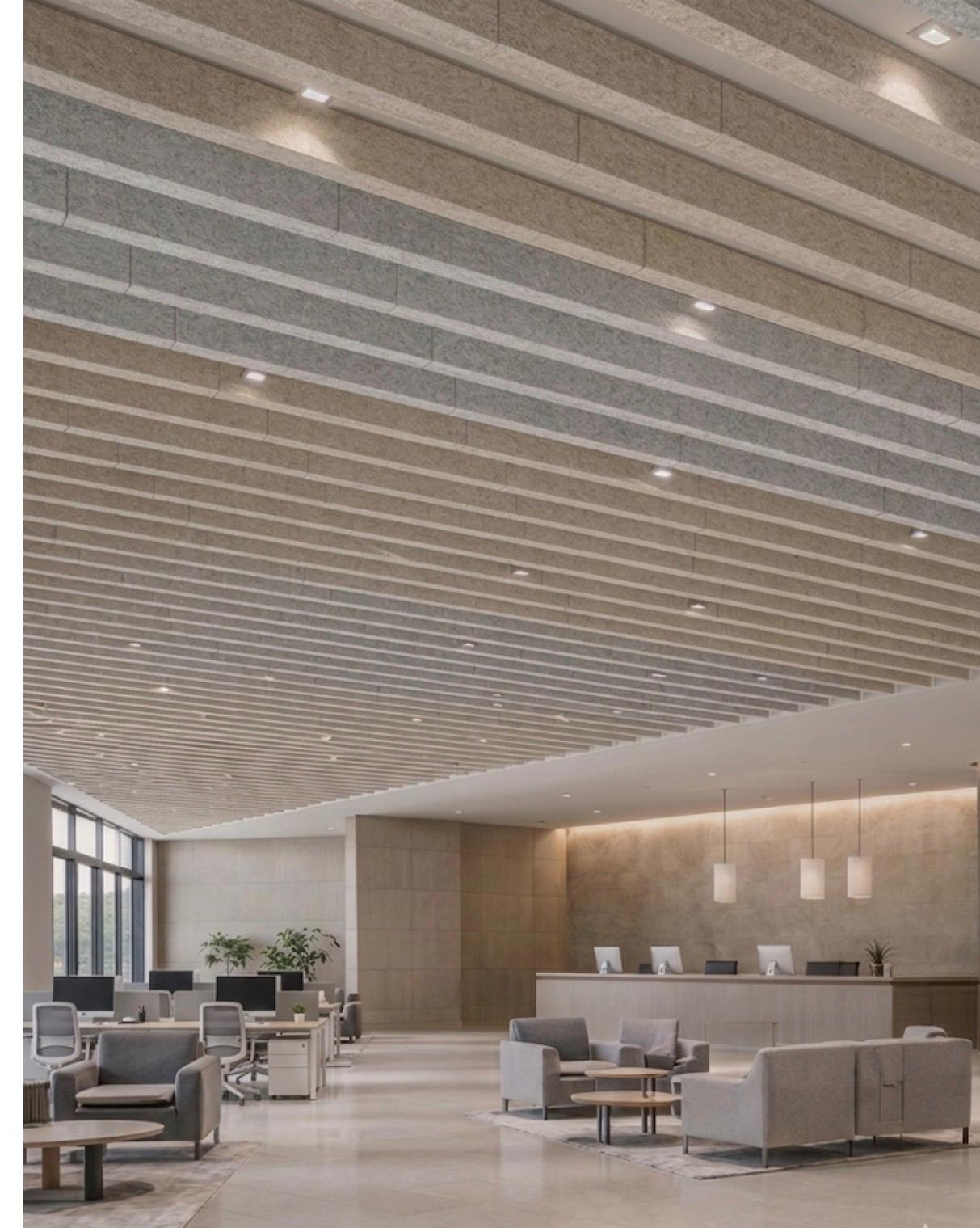 Kutu baffle akustik tavan panelleri, özellikle açık ofisler, restoranlar, alışveriş merkezleri ve geniş hacimli iç mekanlarda gürültü kontrolü ve yankı azaltma için geliştirilen modern akustik çözümlerden biridir. Tavandan sarkıtılarak uygulanan bu paneller, hem mekânın akustik performansını artırır hem de mimari tasarıma güçlü bir estetik katkı sağlar.