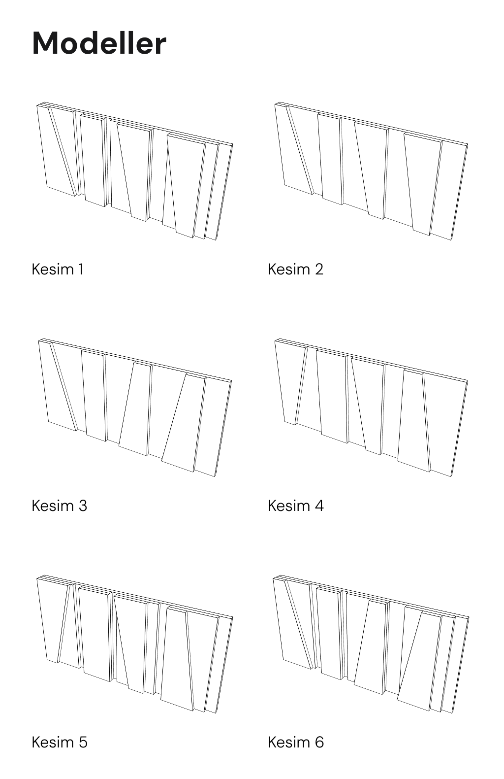 Farklı açılarda kesilmiş sert keçe modüllerin üst üste konumlandırılmasıyla oluşan üç boyutlu yapı: