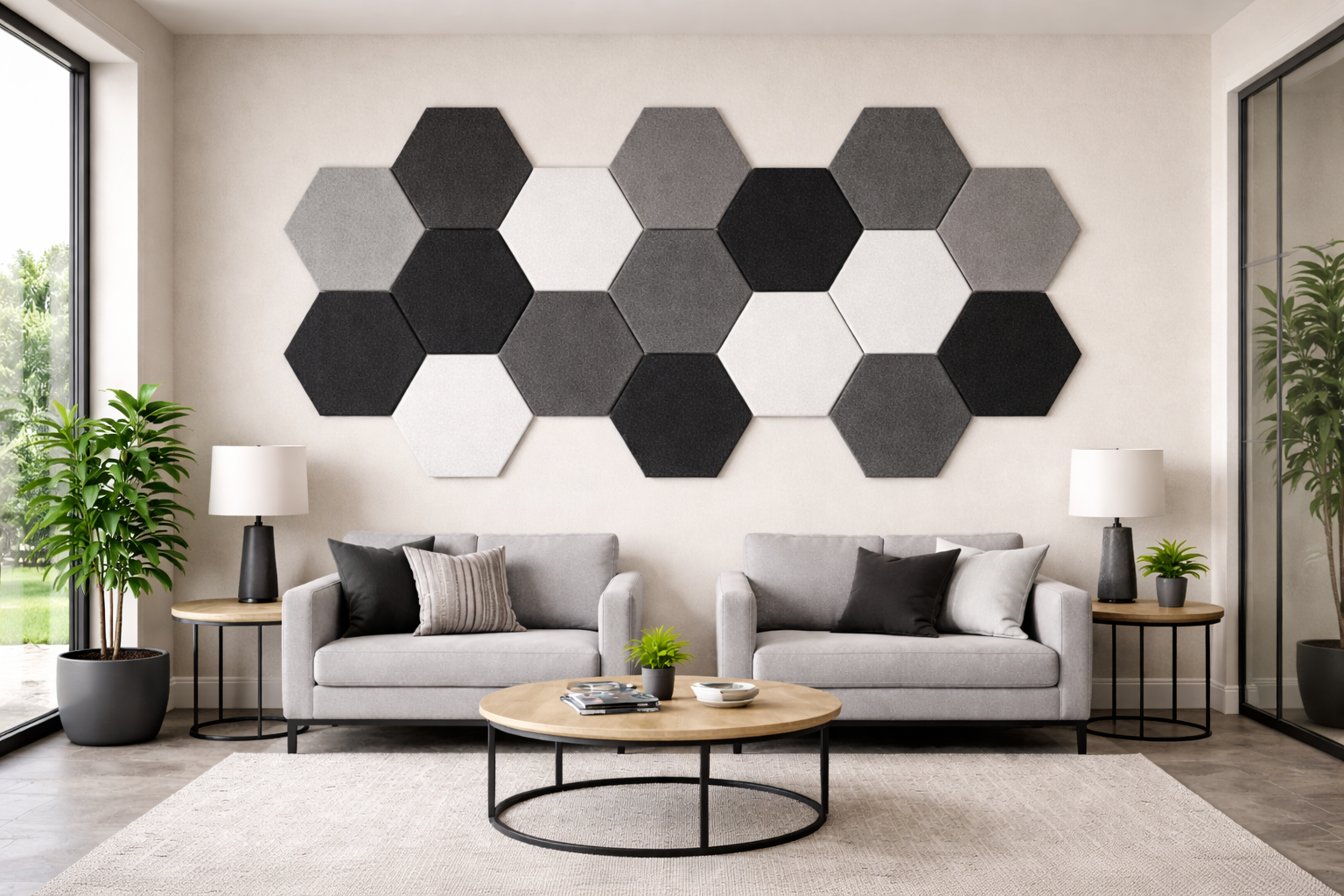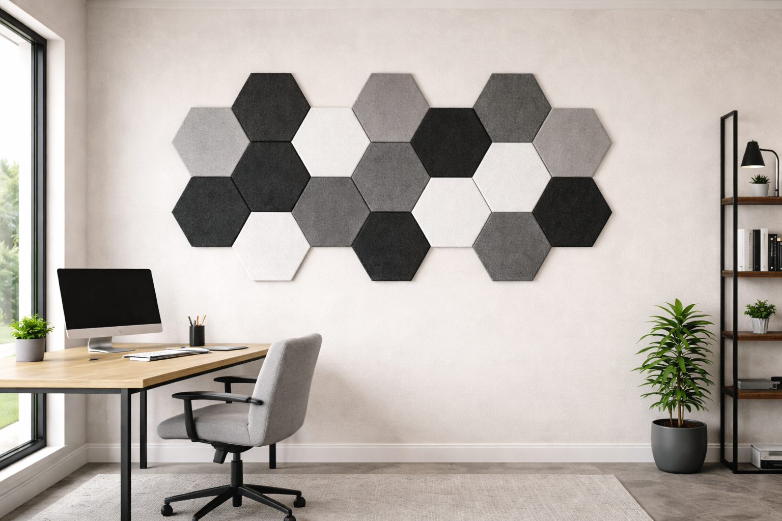 Altıgen formdaki ham keçe akustik duvar panelleri, iç mekanlarda hem dekoratif bir görünüm oluşturmak hem de ortam akustiğini iyileştirmek için tasarlanmış modern bir duvar kaplama çözümüdür. Geometrik altıgen tasarımı sayesinde duvarlarda estetik ve dinamik bir kompozisyon oluştururken, yüksek yoğunluklu polyester keçe yapısı ile yankı ve gürültünün azalmasına yardımcı olur.