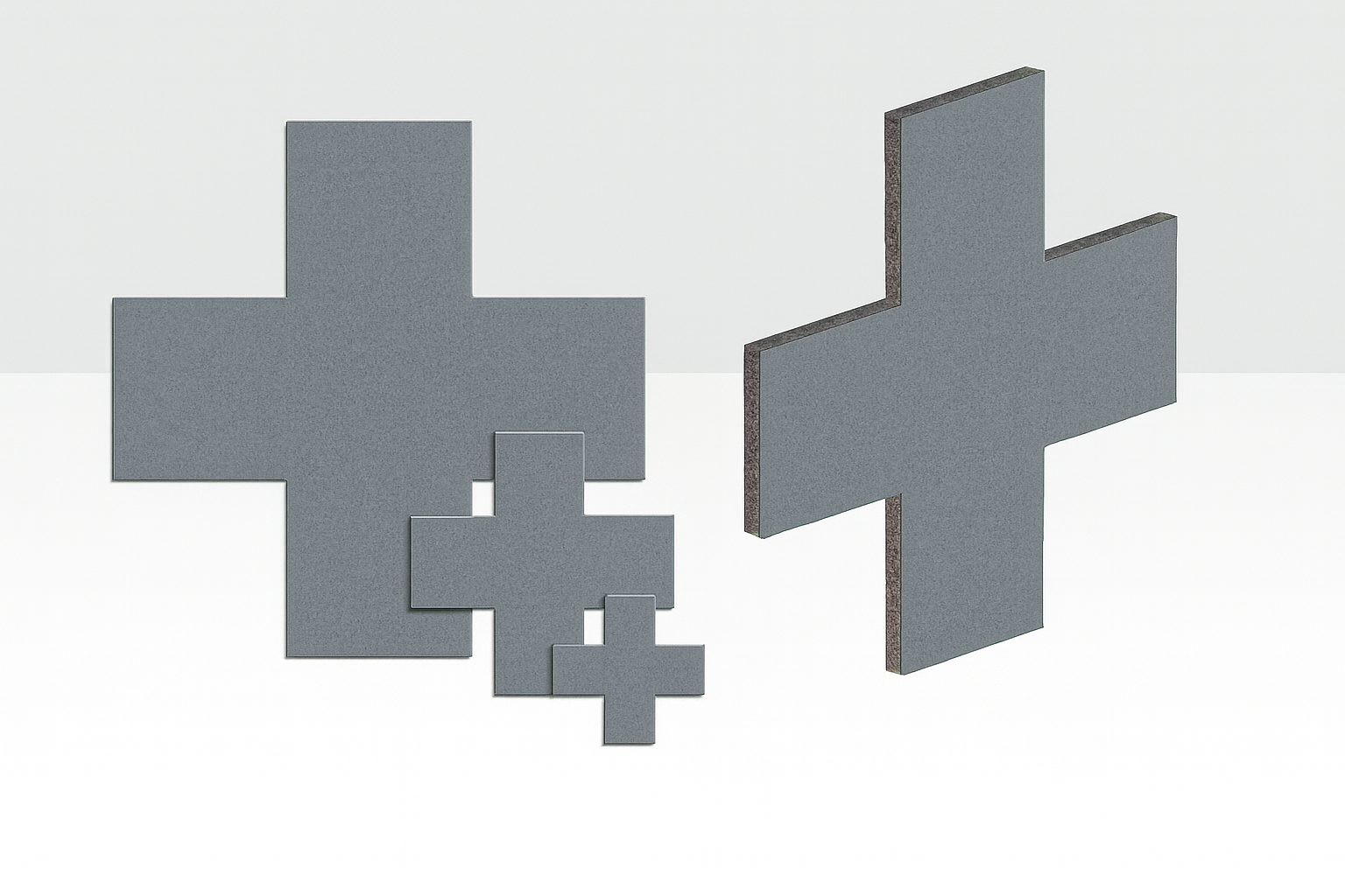 Artı Geo formu, klasik akustik panellerden farklı olarak mekana güçlü bir karakter kazandırır. Tekli kullanımda minimal bir vurgu oluştururken, çoklu uygulamalarda duvar boyunca devam eden modern bir desen elde edilir.