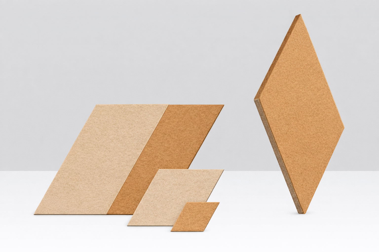 Ham Renkli karo akustik paneller, PET keçe malzemeden üretilir ve iç mekân akustiğini iyileştirmeye yardımcı olur.